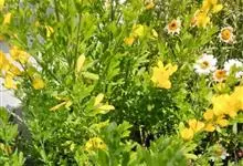 金雀儿 Link.),豆科、金雀儿属植物。落叶灌木,因花多为黄色或金黄色,形状酷似雀儿,故名金雀儿。高0.8-2.5米;小枝细长,有棱。上部常为单叶,下部为掌状三出复叶;小叶倒卵形至椭圆形全缘,…全部>>