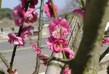 宫粉梅 Rehd.)是蔷薇科、李属植物,梅花品系中真梅系直枝梅类宫粉型,其花复瓣至重瓣,呈或深或浅的红色。落叶乔木,高达10米。树干褐紫色,有纵驳纹,小枝细而无毛,多为绿色。叶广卵形至卵形,…全部>>