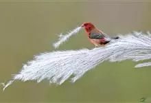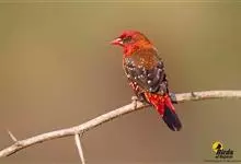 红梅花雀小型鸟类,体长9-10厘米。雄鸟通体朱红色,背、肩、胸等满布白色小斑点,两翅和尾黑褐色均具白色端斑,嘴红色,脚蜡黄色。雌鸟上体淡褐色或赭褐色,翅上中覆羽、大覆羽和内侧飞羽末端具白色斑点,…全部>>