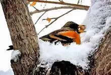 燕雀属小型鸟类,体长14-17厘米。嘴粗壮而尖,呈圆锥状。雄鸟从头至背辉黑色,背具黄褐色羽缘。腰白色,颏、喉、胸橙黄色,腹至尾下覆羽白色,两胁淡棕色而具黑色斑点。两翅和尾黑色,翅上具白斑。…全部>>
