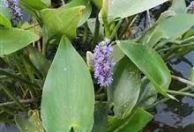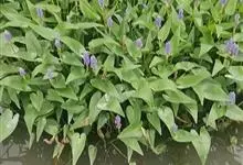 梭鱼草是雨久花科,梭鱼草属多年生挺水或湿生草本植物,株高可达150厘米,地茎叶丛生,圆筒形叶柄呈绿色,叶片较大,深绿色,表面光滑,叶形多变,但多为倒卵状披针形。花葶直立,通常高出叶面,穗状花序顶生,…全部>>