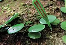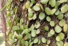 伏石蕨是水龙骨科、伏石蕨属小型附生蕨类植物。根状茎细长横走,淡绿色,疏生鳞片粗筛孔,两侧不规则分叉。叶远生,二型;叶片近球圆形或卵圆形,基部圆形或阔楔形,全缘;能育叶狭缩成舌状或狭披针形,叶脉网状,…全部>>