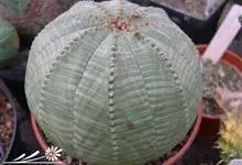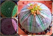 布纹球是大戟科、大戟属植物。植株小球形,直径8-12厘米。具棱8,整齐。表皮灰绿色中有红褐色纵横交错的条纹,顶部条纹较密。棱缘上有褐色小钝齿。雌雄异株,雌株球体较扁,雄株茎圆筒形,均为单生,…全部>>