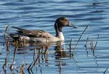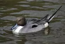 针尾鸭,是雁形目鸭科鸭属动物。体长约75厘米的大型戏水鸭,雄鸟头暗褐色,颈侧有白色纹路,向下与胸部白色相连,中央一对尾羽特别长;背灰色,有黑色细纹;翼镜绿色,胸腹白色,尾下覆羽黑色;雌鸟体羽大致为褐色,…全部>>