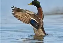 绿头鸭属游禽,大型鸭类。体长47-62厘米,体重大约1千克,外形大小和家鸭相似。雄鸟嘴黄绿色,脚橙黄色,头和颈辉绿色,颈部有一明显的白色领环。上体黑褐色,腰和尾上覆羽黑色,两对中央尾羽亦为黑色,且向…全部>>