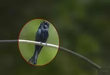 发冠卷尾是中型鸟类,体长28-35厘米。通体绒黑色缀蓝绿色金属光泽,额部具发丝状羽冠,外侧尾羽末端向上卷曲。栖息于海拔1500米以下的低山丘陵和山脚沟谷地带,多在常绿阔叶林、次生林或人工松林中活动。…全部>>