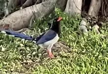 红嘴蓝鹊,别名山鹊、长尾鹊,是鸦科蓝鹊属的一种观赏性较强的大型鸣禽。该物种为体长54~65cm,头、颈、喉和胸黑色,头顶至后颈有一块白色至淡蓝白色或紫灰色块斑,其余上体紫蓝灰色或淡蓝灰褐色。尾长呈凸状,…全部>>