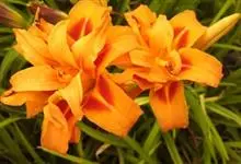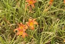 金娃娃萱草:是萱草的人工栽培的园艺品种。地下具根状茎和肉质肥大的纺锤状块根。叶基生,条形,排成两列,长约25厘米,宽1厘米。株高30厘米,花莛粗壮,高约35厘米。螺旋状聚伞花序,花7至10朵。…全部>>