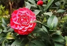 滇山茶:灌木至小乔木,有时高达15米,嫩枝无毛。叶阔椭圆形,上面干后深绿色,发亮,下面深褐色,无毛,侧脉6-7对,边缘有细锯齿。花顶生,红色,直径10厘米,无柄;苞片及萼片10-11片,花瓣红色,…全部>>