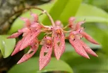 萼脊兰 Garay et Sweet):茎长约1厘米,被宿存的叶鞘所包。叶4-6枚,长圆形或倒卵状披针形。总状花序长18厘米,下垂,疏生6朵花;花具橘子香气,萼片和花瓣白绿色;萼片长圆形,长1.7厘…全部>>