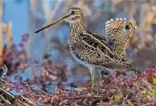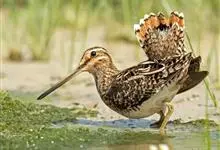 扇尾沙锥是鹬科、沙锥属鸟类,又称普通沙锥、扇尾鹬、小沙锥。体型小;喙粗长而直;上体黑褐色,具栗色和黄白色斑纹;头顶具黄白色中央冠纹,背具4条白纵带;下体白色,颈、胸淡褐色,带褐色纵纹;翼后缘白色,…全部>>