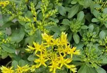 费菜 ’t Hart),又名土三七、三七景天、景天三七等,为景天科费菜属多年生草本植物。费菜根状茎短,有1-3条茎,直立。叶互生,狭披针形、椭圆状披针形至卵状倒披针形;叶坚实,近革质。聚伞花序有多花,…全部>>