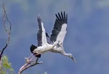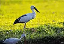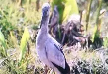 钳嘴鹳:鹳科动物。双翅展开时宽达81厘米。体型很大,体长81厘米。体羽白色至灰色,冬羽烟灰色。飞羽和尾羽黑色。下喙有凹陷,喙闭合时有明显缺口。…全部>>