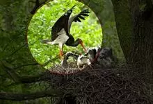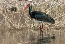 黑鹳是鹳形目鹳科鹳属鸟类,俗称乌鹳、钢鹳、老鹤。黑鹳头、颈和脊均呈黑褐色,故名黑鹳。黑鹳上体羽黑色、并带有绿紫色金属光泽,胸腹部羽白色;嘴、腿均红色;两性相似;成鸟嘴长而直,基部较粗,…全部>>