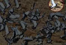 黑头鹮鹳:大型涉禽。体长102厘米,翼展150-175厘米,体重2050-2640克。寿命10年。嘴长而粗壮,飞时头颈伸直。雌雄相似。成鸟上体白色,下体白色。翼下覆羽有黑色横带,具绿色光泽和白色羽缘。…全部>>