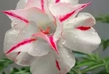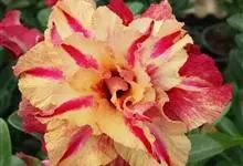 沙漠玫瑰 Roem. & Schult.),别名天宝花、阿拉伯沙漠玫瑰、索马里沙漠玫瑰等,为夹竹桃科沙漠玫瑰属的一种多肉灌木或小乔木植物。其树干肿胀,茎干光滑,白绿色或灰白色,…全部>>