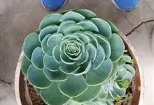 蓝石莲是景天科、拟石莲花属的多肉植物。茎部粗壮,成熟植株茎部木质化。叶片莲座型密集排列,株径不会很大,叶片相对较薄,常年绿色,表面布有白色粉末,中部凹陷,呈倒水滴状。叶尖较尖,叶缘光滑无褶皱,…全部>>