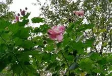 木芙蓉,锦葵科木槿属落叶灌木或小乔木。小枝上有细绒毛;叶片为卵状心形,托叶为披针形,常早落;花单生,花萼为钟形,花冠初为白色或淡红色,后逐渐变为深红色;果实为扁球形,有淡黄色的毛附着。花期8到10月。…全部>>