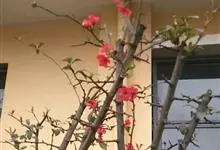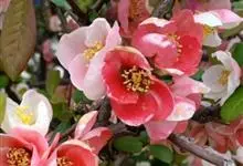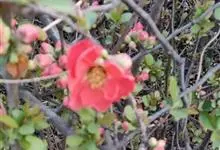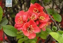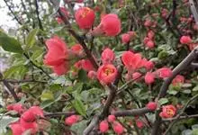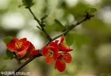 贴梗海棠Nakai)是蔷薇科、木瓜海棠属植物。落叶灌木,高达2米,枝条直立开展,有刺。叶片卵形至椭圆形,稀长椭圆形,长3-9厘米,宽1.5-5厘米。花先叶开放,3-5朵簇生于二年生老枝上。…全部>>