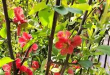 贴梗海棠 Nakai)是蔷薇科、木瓜海棠属植物。落叶灌木,高达2米,枝条直立开展,有刺。叶片卵形至椭圆形,稀长椭圆形,长3-9厘米,宽1.5-5厘米。花先叶开放,3-5朵簇生于二年生老枝上。…全部>>