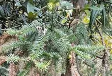 墨西哥落羽杉是柏科落羽杉属植物,半常绿或常绿乔木,在原产地高达50米,胸径可达4米;树干尖削度大,基部膨大;枝条水平开展,形成宽圆锥形树冠,大树的小枝微下垂。叶条形,扁平,排列紧密,长约1厘米,…全部>>