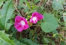 五爪金龙 Sweet),旋花科番薯属多年生缠绕草本植物。茎细长,有细棱;叶片为掌状;花冠紫红色、紫色或淡红色、偶有白色,漏斗状;蒴果近球形。花期5~12月。五爪金龙的叶子类似掌状,有5至7个裂痕,…全部>>