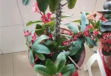 铁海棠为大戟科大戟属蔓生灌木植物;茎多分枝,具纵棱,呈旋转状;叶互生,通常集中于嫩枝上;每个花序基部边缘具微小的红色尖头;苞叶先端圆且具小尖头,无柄,上面鲜红色,下面淡红色;苞片丝状;子房光滑无毛,…全部>>