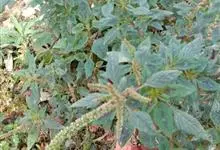 反枝苋是苋科苋属的一年生草本植物。株高达1米;茎密被柔毛;叶菱状卵形或椭圆状卵形,先端锐尖或尖凹,两面及边缘被柔毛,下面毛较密;穗状圆锥花序,顶生花穗较侧生者长;花被片长圆形或长圆状倒卵形,…全部>>