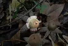 铁西瓜为紫葳科、葫芦树属的常绿小乔木,高5~18米,为典型的热带雨林“老茎生花”植物。其花、果单生于小枝或老茎上;花冠钟形,淡绿黄色,具褐色脉纹,春夏开花。全部>>