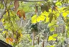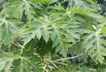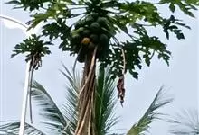 番木瓜,番木瓜科番木瓜属的常绿软木质小乔木,高达10米,具有乳汁;茎不分枝或有时于损伤处分枝;叶大且聚生于茎顶,近似盾形,叶柄中空;花单性或两性,有些品种雄株偶尔生两性花或雌花,…全部>>