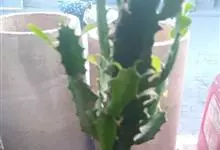 霸王鞭,是大戟科大戟属的多年生肉质灌木,全株含白色乳汁;茎直立,茎基部圆柱形,上部4~5纵棱,边缘波状,外面深绿色;叶互生,上部叶密集,近于簇生,具短柄,其基部有利刺1对;叶片披针形,先端圆,…全部>>