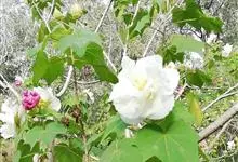 木芙蓉,锦葵科木槿属落叶灌木或小乔木。小枝上有细绒毛;叶片为卵状心形,托叶为披针形,常早落;花单生,花萼为钟形,花冠初为白色或淡红色,后逐渐变为深红色;果实为扁球形,有淡黄色的毛附着。花期8到10月。…全部>>