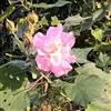 木芙蓉,锦葵科木槿属落叶灌木或小乔木。小枝上有细绒毛;叶片为卵状心形,托叶为披针形,常早落;花单生,花萼为钟形,花冠初为白色或淡红色,后逐渐变为深红色;果实为扁球形,有淡黄色的毛附着。花期8到10月。…全部>>