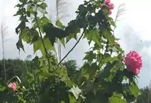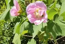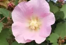 海滨木槿是锦葵科木槿属植物,落叶小乔木,株高3-5米,胸径20厘米,扁球形树冠,枝叶繁盛。厚纸质单叶互生,扁圆形、倒卵形或宽倒卵形,先端钝近平,具短突尖,基部圆形或浅心形,叶缘中上部具细圆齿,…全部>>