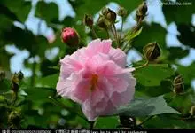 木芙蓉,锦葵科木槿属落叶灌木或小乔木。小枝上有细绒毛;叶片为卵状心形,托叶为披针形,常早落;花单生,花萼为钟形,花冠初为白色或淡红色,后逐渐变为深红色;果实为扁球形,有淡黄色的毛附着。花期8到10月。…全部>>