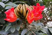 火焰木,又名苞萼木、喷泉树,为紫葳科常绿大乔木,株高10—20米,叶为奇数羽状复叶,对生,较大,斜椭圆形,全缘,纸质,叶面深绿色。 全部>>