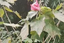 木芙蓉,锦葵科木槿属落叶灌木或小乔木。小枝上有细绒毛;叶片为卵状心形,托叶为披针形,常早落;花单生,花萼为钟形,花冠初为白色或淡红色,后逐渐变为深红色;果实为扁球形,有淡黄色的毛附着。花期8到10月。…全部>>