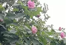 木芙蓉,锦葵科木槿属落叶灌木或小乔木。小枝上有细绒毛;叶片为卵状心形,托叶为披针形,常早落;花单生,花萼为钟形,花冠初为白色或淡红色,后逐渐变为深红色;果实为扁球形,有淡黄色的毛附着。花期8到10月。…全部>>