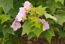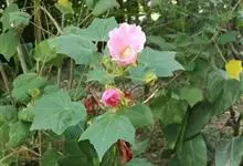 木芙蓉,锦葵科木槿属落叶灌木或小乔木。小枝上有细绒毛;叶片为卵状心形,托叶为披针形,常早落;花单生,花萼为钟形,花冠初为白色或淡红色,后逐渐变为深红色;果实为扁球形,有淡黄色的毛附着。花期8到10月。…全部>>