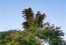 火焰木,又名苞萼木、喷泉树,为紫葳科常绿大乔木,株高10—20米,叶为奇数羽状复叶,对生,较大,斜椭圆形,全缘,纸质,叶面深绿色。 全部>>
