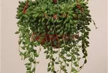 珍珠吊兰因鼓鼓、饱满翠绿的椭圆形小叶子形似珍珠状而得名。又名翡翠珠、 佛珠吊兰、翡翠珠、绿之铃,绿铃。菊科千里光属多肉植物,花期一般是当年的12月至翌年1月。珍珠吊兰性喜富含有机质的、疏松肥沃的土壤。…全部>>