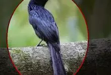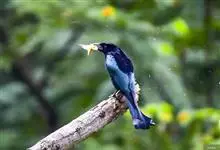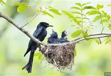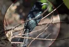 发冠卷尾是中型鸟类,体长28-35厘米。通体绒黑色缀蓝绿色金属光泽,额部具发丝状羽冠,外侧尾羽末端向上卷曲。栖息于海拔1500米以下的低山丘陵和山脚沟谷地带,多在常绿阔叶林、次生林或人工松林中活动。…全部>>