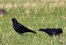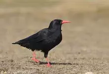 红嘴山鸦,是脊索动物门鸟纲雀形目鸦科鸟类。红嘴山鸦的成鸟通体羽毛纯黑色具有蓝色金属光泽,翼和尾泛有蓝绿色金属光泽;虹膜暗褐色,喙较为尖细,并且呈镰状下弯,喙和脚朱红色。…全部>>