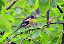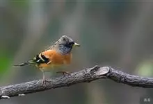 燕雀属小型鸟类,体长14-17厘米。嘴粗壮而尖,呈圆锥状。雄鸟从头至背辉黑色,背具黄褐色羽缘。腰白色,颏、喉、胸橙黄色,腹至尾下覆羽白色,两胁淡棕色而具黑色斑点。两翅和尾黑色,翅上具白斑。…全部>>