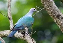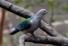 绿皇鸠体形比绿鸠类和果鸠类大,体长36-38厘米,体重508-600克。嘴也较大,嘴基扩张,身体上的杂色通常较少。头部、颈部和下体为鸽灰色,微缀粉葡萄红色,尾下覆羽为暗栗色。前额和额为白色,…全部>>