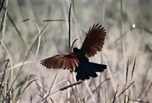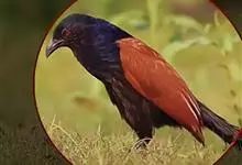 褐翅鸦鹃,是鹃形目鸦鹃科鸦鹃属的鸟类。褐翅鸦鹃的身体为黑色;头颈和胸带蓝紫色金属光泽并具黑亮的羽干纹,下胸至腹部泛金属绿光泽;两翼和肩部为棕栗色,外侧飞羽具暗色羽端,尾羽闪铜绿色光泽;虹膜赤红色,…全部>>