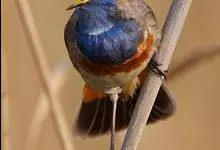 蓝点颏亦称“蓝喉歌鸲”,通称蓝靛颏儿。身体大小和麻雀相似,体长12-13厘米,体重17-18克。头部、上体主要为土褐色。眉纹白色。尾羽黑褐色,基部栗红色。颏部、喉部辉蓝色,下面有黑色横纹。下体白色。…全部>>