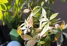 瓜栗 Walp. ),俗称发财树,木棉科小乔木,高4-5米,树冠较松散,幼枝栗褐色,无毛。小叶具短柄或近无柄。花单生枝顶叶腋;花梗粗壮,被黄色星状茸毛,脱落;萼杯状,近革质;花瓣淡黄绿色,狭披针形…全部>>