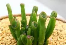 筒叶花月,是景天科青锁龙属的多年生草本植物。植株多分株,灌木状,茎较粗壮,圆柱形,表皮灰褐色;叶片肉质,互生,呈圆筒状,簇生于茎或分枝顶端,叶端呈斜截形,截面为椭圆形;花呈星状,淡白色;花期秋季。…全部>>