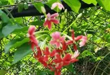 使君子 Jongkind)是使君子科、使君子属攀援灌木,叶对生,椭圆形,两面均被灰白色柔毛。穗状花序,倒挂下垂。花期夏秋。果有五棱,熟时黑色,种子白色。分布于印度、缅甸、菲律宾和中国。喜温润,深根性,…全部>>
